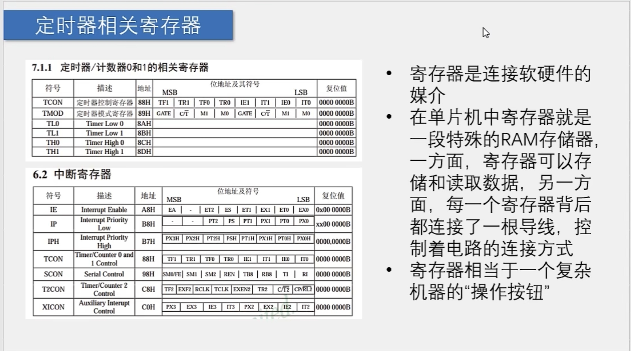 - 单片机的任务是信息采集( 依靠传感器) 、处理( 依靠CPU) 和硬件设备( 例如电机, LED 等) 的控制