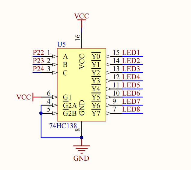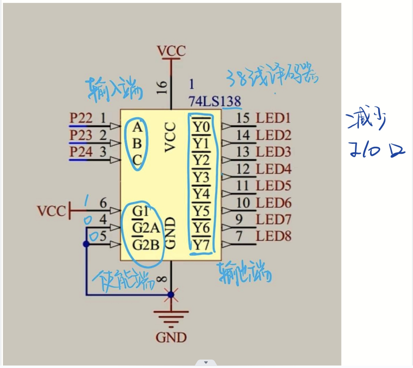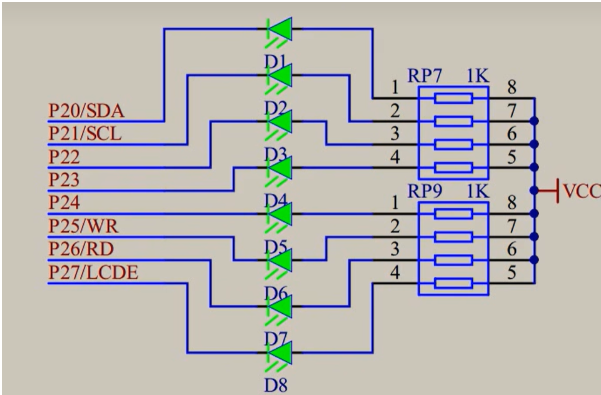 P2口下的寄存器控制LED: 1–5V 不亮 0–0V 亮