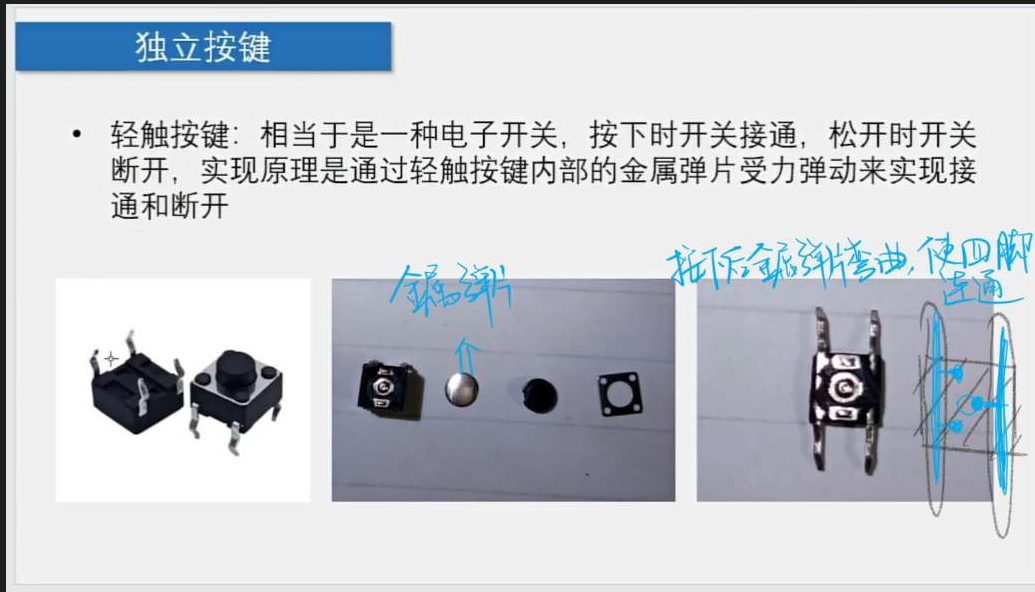 不按下时4个引脚两两连接,按下去时4个引脚同时连接