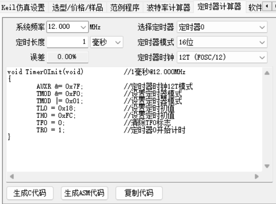 | void Timer0Init(void) { AUXR &= 0xF0; TMOD |= 0x01; TL0 = 0x18; TH0 = 0xFC; TF0 = 0; TR0 = 1; ET0=1; EA=1; PT0=0; }