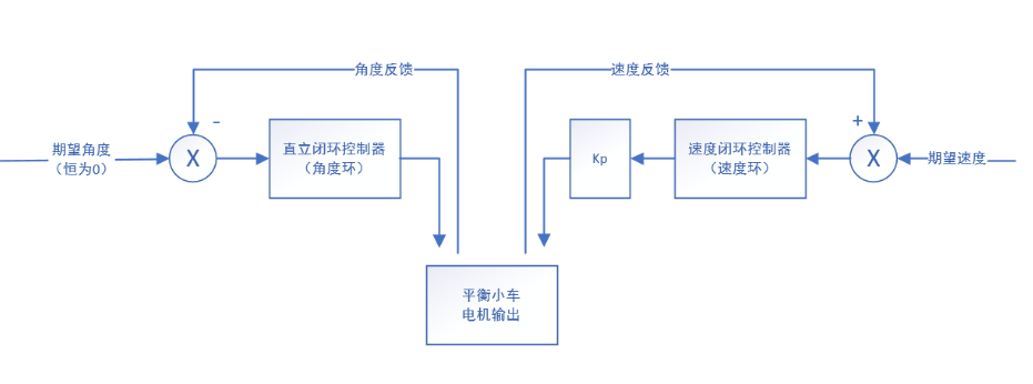 根据以上的分析,在直立控制里面加入速度负反馈无法达到速度闭环的目的,而且还会破坏直立控制系统。下面我们换一种思路。